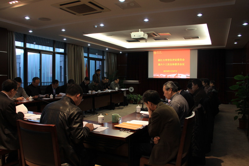 2015年1月27日,浙江大学学位评定委员会第六十三次全体委员会议在紫金港校区顺利召开。会议由浙江大学校长、学位评定委员会主任林建华主持,副主任严建华等21名委员出席此次会议。