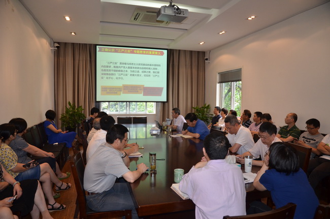 按照校党委“三严三实”专题教育统一部署,在中国共产党建党94周年之际,研究生院于2015年7月1日下午在研究生院241会议室召开“三严三实”之“严以修身”专题学习会。研究生院党员和非党员同志共同参加了本次学习会。会议由研究生院党支部书记蒋笑莉同志主持,研究生培养处处长叶恭银同志主讲。