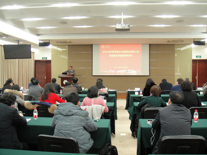 2017年1月16日下午,“2015-2016学年浙江大学研究生招生工作先进集体评选答辩评审会”在紫金港校区校友楼紫金港厅举行。研究生院常务副院长王立忠、工程师学院常务副院长王家平、研究生院各部处、校纪委办、本科生院和科研院等有关部门负责人担任此次评审会评委。会议由研究生招生处副处长周文文主持。各学院(系)分管研究生工作的副院长或副书记、研究生教育科科长参加了会议。
