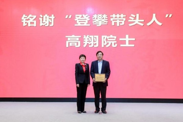 活动现场,朱慧副书记为高翔院士颁发登攀带头人铭谢牌,研究生院常务副院长夏群科和人才工作办公室主任许登攀引路人颁发聘书。