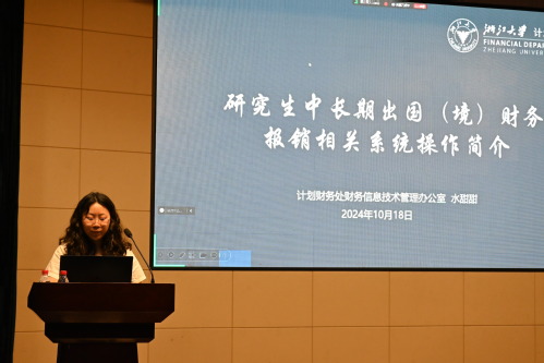 最后,计划财务处会计核算中心紫金港分中心(东区)副主任吴慧夏、财务信息技术管理办公室水甜甜为同学们详细介绍了研究生中长期出国财务报销和计财处系统操作流程,并耐心解答了同学们的疑问。