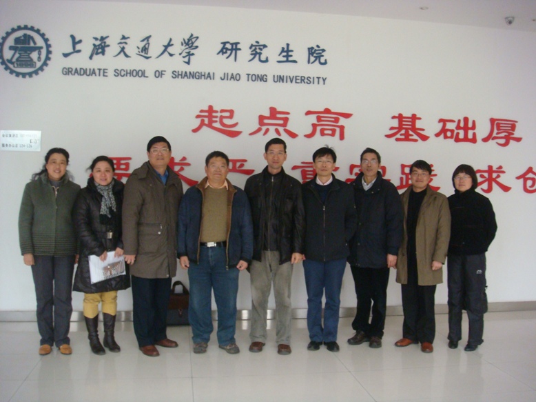 On the morning of December 25th, 2009, the leading group of Graduate School conducted an investigation into the School of Graduate Education of Shanghai Jiaotong University. The investigation group led by Prof. Jianhua Yan, Deputy Dean of Graduate School consisted of Director of Graduate Admission Office Weizhe Chen, Director of the Graduate Academic Affairs Office Gongyin Ye, Director of the Graduate Administration Miaohua Lv, Deputy Director of Disciplinary Construction Xiaoli Jiang. The goal of the investigation is to prompt the further development of our graduate education by thorough communication, which is favorable for us to learn the advanced concept and management experience from the brother university. Deputy Dean of School of Graduate Education of Shanghai Jiaotong University Zhaohui Du, Deputy Dean Mingzhu Liu, Deputy Dean of Jianbo Su, Director of Graduate Admission Office Xiaofen Wu and Vice Section Chief of Student Affairs Council Zhen Wang welcomed the investigation group.