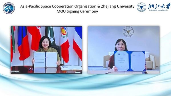 On the morning of July 20, Zhejiang University convened a significant virtual conference with the Asia-Pacific Space Cooperation Organization (APSCO). HE Lianzhen, vice president of ZJU, and YU Qi, secretary-general of APSCO, formally endorsed a memorandum of understanding to solidify their partnership at the university level.